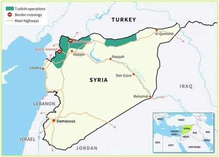 Թուրքիան արդեն ավելի քան 8 տարի է՝ գրավել է Սիրիայի միջազգայնորեն ճանաչված տարածքը։ Երեք հատ Սյունիքի մարզի տարածքի չափ հող (քարտեզի վրա կանաչ գույնով)։ Բայց շարունակում է պնդել, որ ճանաչում է Սիրիայի տարածքային ամբողջականությունը։