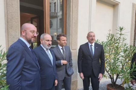 Լուսանկարում չորսն են՝ Փաշինյանը, Ալիևը, Մակրոնը, Միշելը։