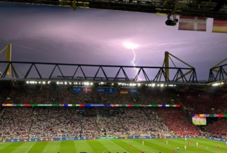 Եվրո-2024-ի 1/8 եզրափակիչի Գերմանիա-Դանիա հանդիպումը հորդառատ անձրեւի, կարկուտի, ամպրոպի եւ կայծակի պատճառով մրցավարի որոշմամբ ընդհատվեց 36-րդ րոպեին (տեսանյութ)։