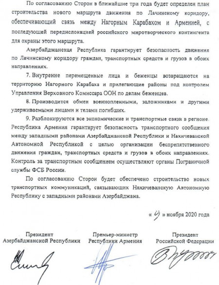 Մինչդեռ նոյեմբերի 9-ի եռակողմ հայտարարության՝ ՀՀ վարչապետի կայքում հրապարակված տեքստի 9-րդ հոդվածում կարդում ենք Նիկոլ Փաշինյանի կողմից նրբորեն շրջանցված նախադասությունը.