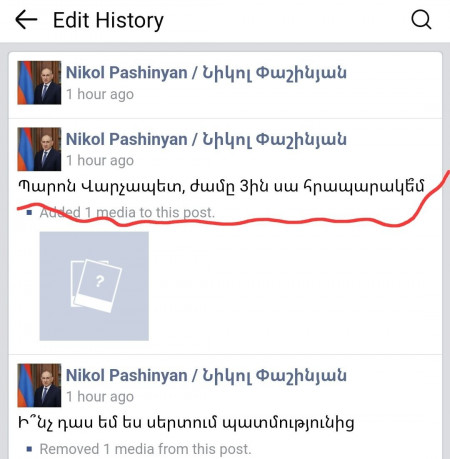 Մասնավորապես, Փաշինյանը հարցնում է, թե՝ պարոն վարչապետ, այսինչ ժամին այնինչ գրառումը ֆեյսբուքում հրապարակի՞: