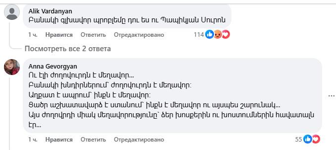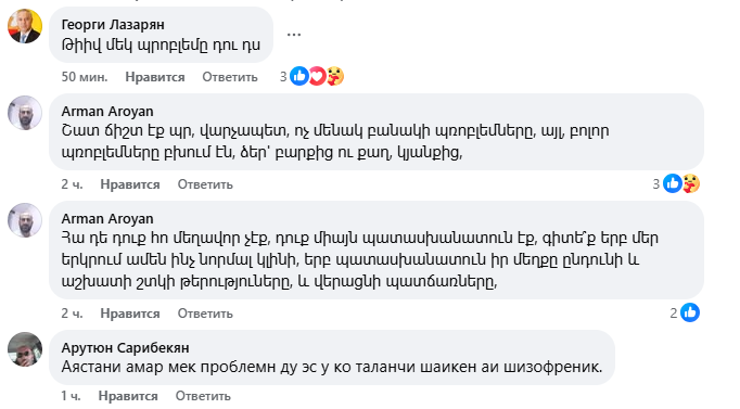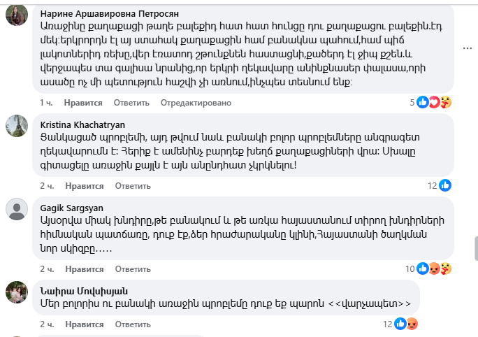 Օգտատերերը շատ բուռն են արձագանքել Փաշինյանի գրառմանը՝ մեր երկրում խնդիրների մեղավոր համարելով հենց իրեն։