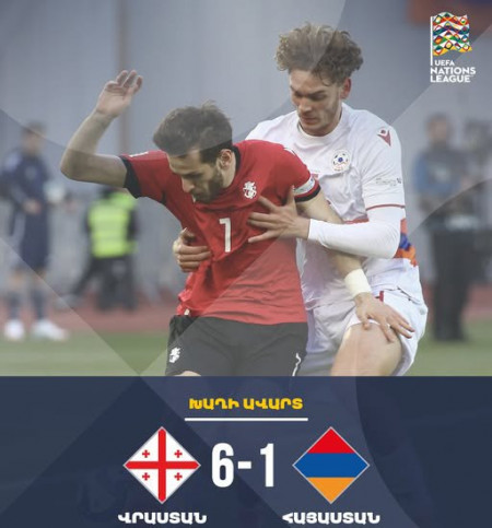 ՈւԵՖԱ Ազգերի լիգայի անցումային փլեյ-օֆֆի շրջանակում Հայաստանի ազգային հավաքականը Թբիլիսիի «Դինամո Արենա» մարզադաշտում հյուրընկալվել է Վրաստանի ընտրանուն։ Հիշեցնենք, որ թիմերի միջև առաջին հանդիպումն ավարտվել էր Վրաստանի հավաքականի հաղթանակով՝ 3։0 հաշվով։ Այսօրվա հանդիպումն էլ ավելի գոլառատ ստացվեց և ավարտվեց տանտերերի խոշոր՝ 6-1 հաշվով հաղթանակով։