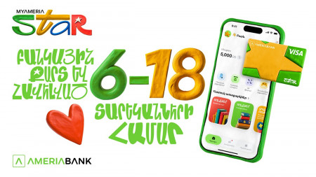 Ամերիաբանկը գործարկել է MyAmeria Star բանկային նոր հավելվածը՝ նախատեսված 6-ից 18 տարեկանների համար։ MyAmeria Star-ն անվտանգ և հարմարավետ բանկային լուծում է երեխաների և դեռահասների համար՝ ծնողական ամբողջական վերահսկողության հնարավորությամբ։