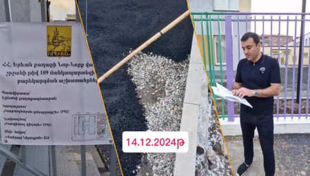 Ասեմ ավելին՝ Երևանի քաղաքապետարանի պաշտոնյաները պնդում էին, որ տեսանյութը դեռ բավական չէ պատշաճ ընթացք տալու համար, և անհրաժեշտ է ասֆալտից նմուշներ վերցնել և լաբորատոր փորձարկման միջոցով պարզել՝ արդյոք բիտում կա, թե ոչ։ Այդ առիթով «պայմանավորվածություն» էր ձեռք բերվել՝ իրենց առաջարկով իմ նշած լաբորատորիայով կատարել փորձարկումը։ Շինբարեկարգման աշխատակցին «պայմանավորվածության» շրջանակում ցույց էի տվել, թե որ հատվածից պետք է ասֆալտի նմուշ վերցվի, և իմ առաջարկած «Դեպարտամենտի» լաբորատորիային իրենք համաձայնվել էին, բայց հետո ասացին՝ չի լինում։ Այնուհետև առաջարկեցի անել «Ճանշինի» լաբորատորիայով, և այդ պահից նրանք պարզապես անհետացան։