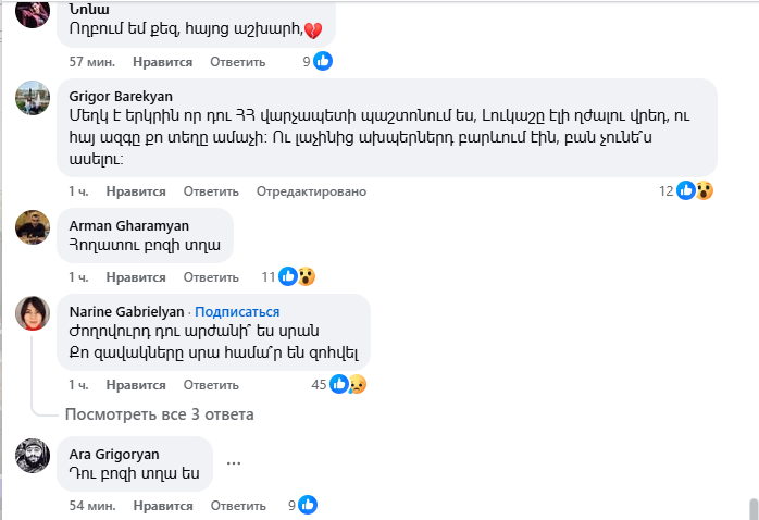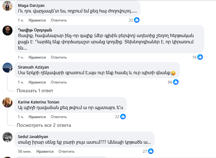Սակայն ավելի շատ հայհոյանք ու վիրավորանք Փաշինյանը «վաստակել է» հենց իր գրառման տակ։