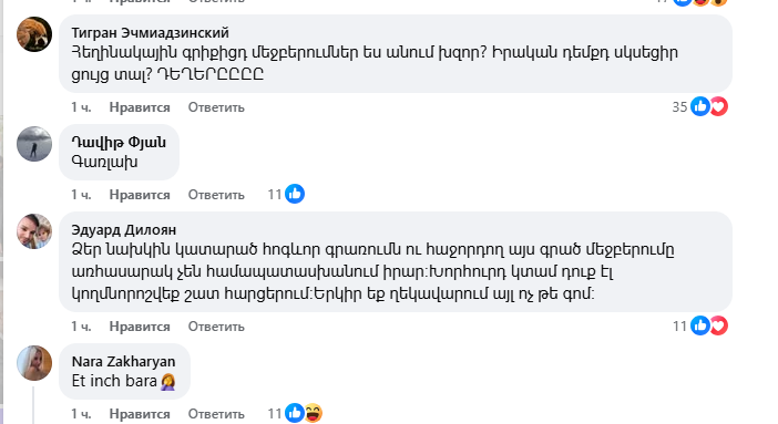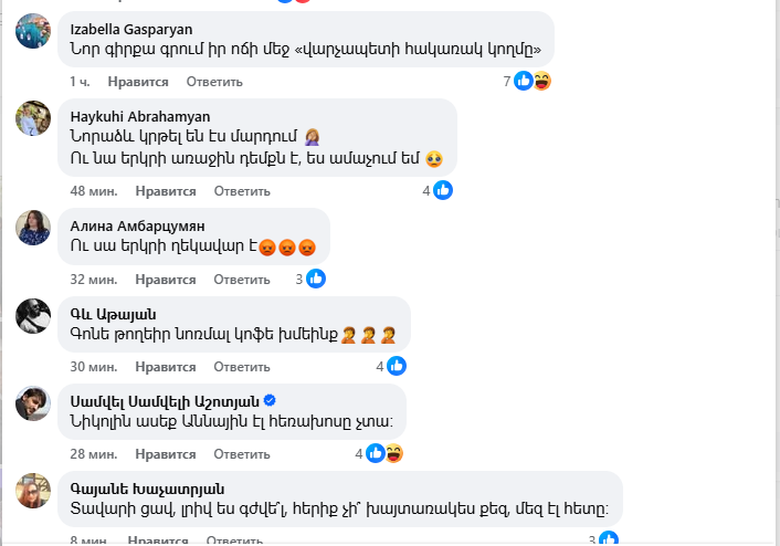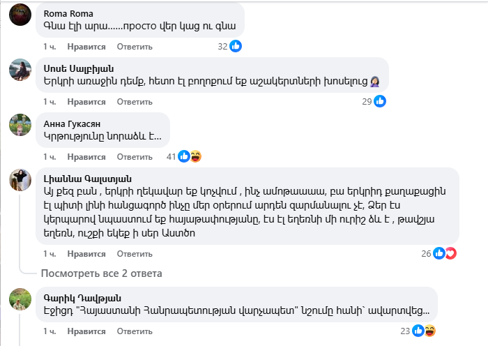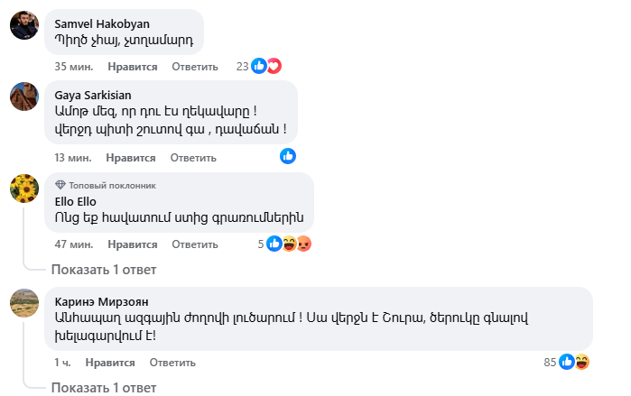 Փաշինյանի գրառումը զայրացրել է ժողովրդին, ովքեր հայհոյանքով ու վիրավորանքներով են պատասխանում Փաշինյանին։