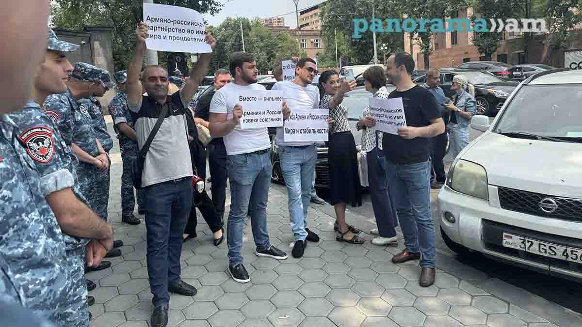 ԱԺ դիմաց բացի արևմտամետներից ակցիա են իրականացնում նաև ռուսամետ քաղաքացիները։ Արևմտամետներն այստեղ են ԵՄ դրոշներով, Ռուսաստանին դատապարտող գրություններով ցուցապաստառներով, իսկ ռուսամետները՝ ՌԴ դրոշներով, հայ-ռուսական բարեկամության մասին գրառումներով ցուցապաստառներով։