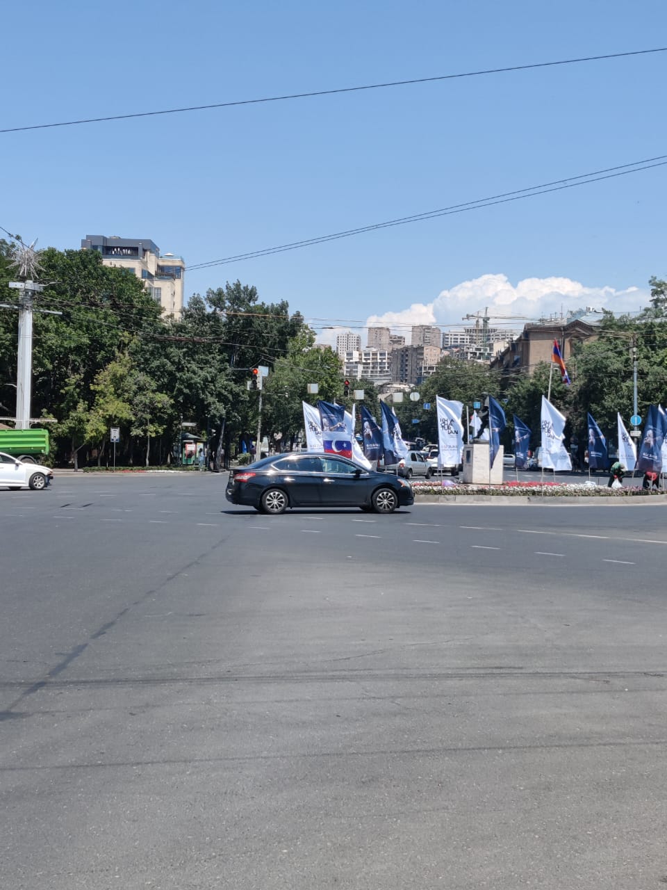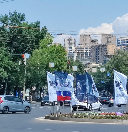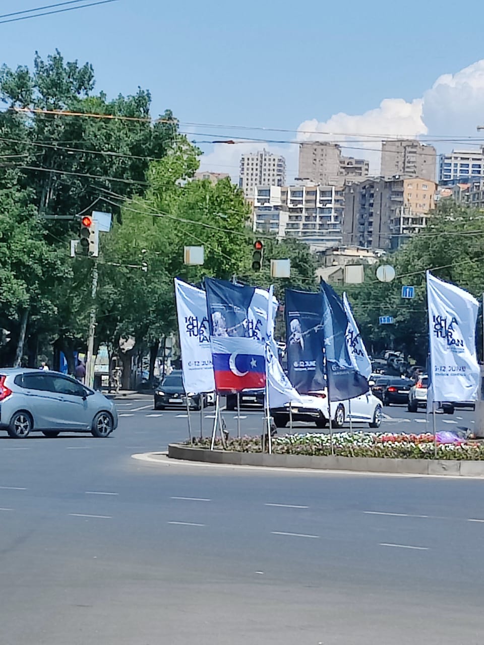 Հ.Գ. Նկարներում երևացող սպիտակ-կապտավուն դրոշակները քաղաքականության հետ կապ չունեն, դրանք Արամ Խաչատրյանի միջազգային մրցույթի մասին ազդարարող պաստառներ են: