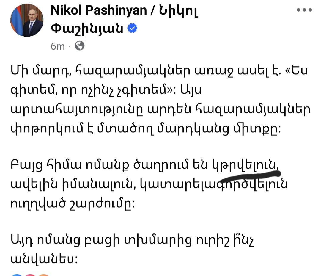 Ահավասիկ. «Հազարամյակներ առաջ կրթվելը կթրվել ա կոչվել, այ տխմարներ։