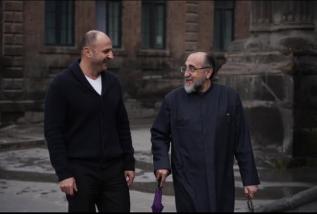 Կարեն Սիմոնյանը գրառման հետ հրապարակել է լուսանկար, որտեղ պատկերված են Միքայել արքեպիսկոպոս Աջապահյանը և ինքը:
