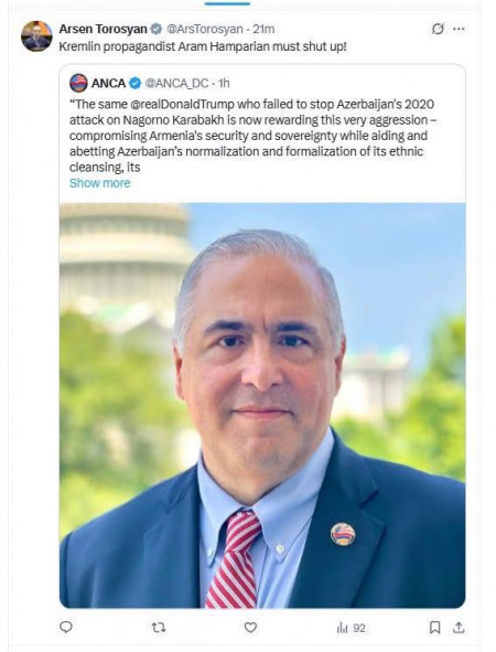 Արսեն Թորոսյանին խիստ զարմացրել է, ինչպես կարող է ԱՄՆ-ում գործող Հայ Դատի գրասենյակը քննադատել ԱՄՆ նախագահին ու չհայտնվել ճաղերի ետևում, կազմակերպությունն էլ շարունակի գործել:
