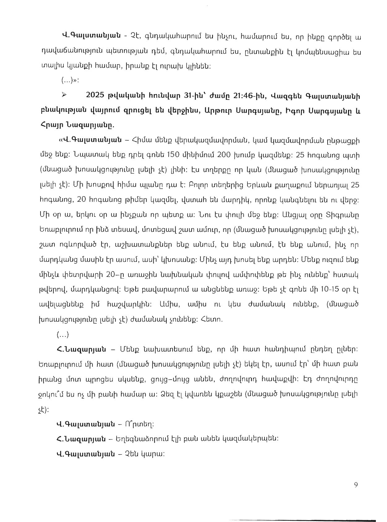 - ԱԱԾ-ի սղագրած նյութը (կից երկու նկարները), նաև որի հիման վրա հարուցվել է գործը: