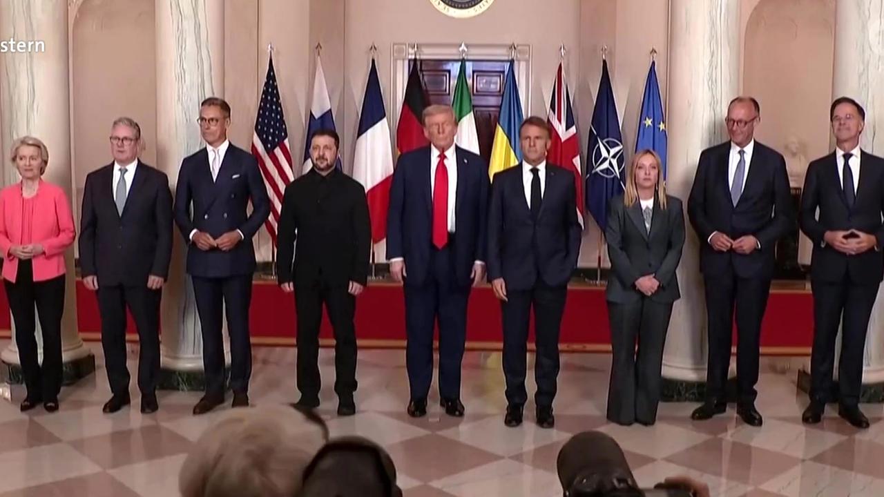 Զելենսկու հետ Վաշինգտոն էր ժամանել յոթ եվրոպացի առաջնորդ՝ Մեծ Բրիտանիայի և Իտալիայի վարչապետներ Կիր Ստարմերը և Ջորջ Մելոնին, Գերմանիայի կանցլեր Ֆրիդրիխ Մերցը, Ֆինլանդիայի և Ֆրանսիայի նախագահներ Ալեքսանդր Ստուբը և Էմանուել Մակրոնը, ՆԱՏՕ-ի գլխավոր քարտուղար Մարկ Ռյուտեն ու Եվրահանձնաժողովի նախագահ Ուրսուլա ֆոն դեր Լեյենը։