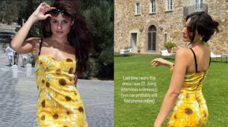 «Վերջին անգամ այս զգեստս հագել էի 22 տարեկանում, երբ հարցազրույց էի տալիս Հունաստանում։ Դուք, հավանաբար, դեռ կարող եք տվյալ լուսանկարները գտնել համացանցում»,-ինստագրամյան էջի առաջին «սթորիում» անգլերելով գրել է երգչուհին։