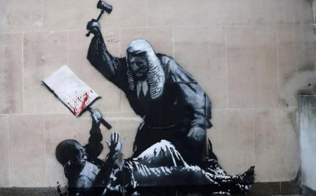 Իրավապաշտպան, փաստաբան Ռուբեն Մելիքյանը զետեղել է Բենքսիի՝ այս օրերին մեծ ուշադրություն գրաված գրաֆիթիի լուսանկարն ու գրել. ««Անարդարադատության» մասին Բենքսիի գրաֆիթին, որը նա նկարել էր անգլիական դատարանի շենքին։