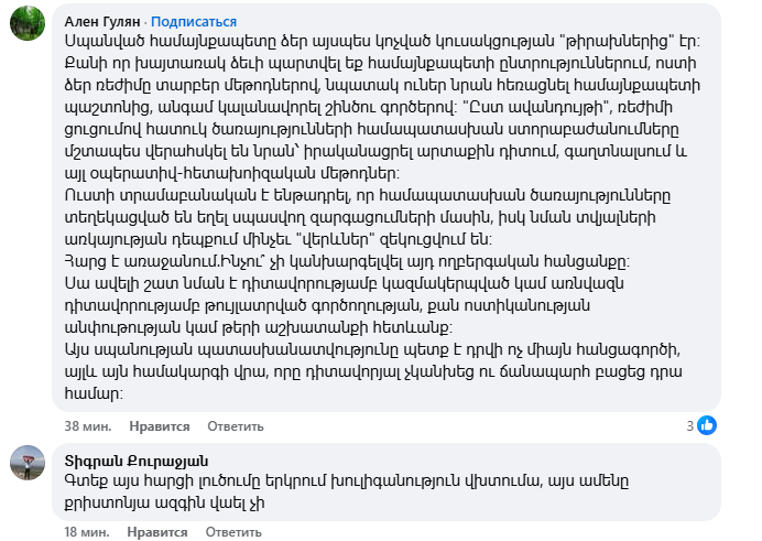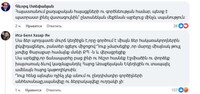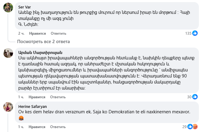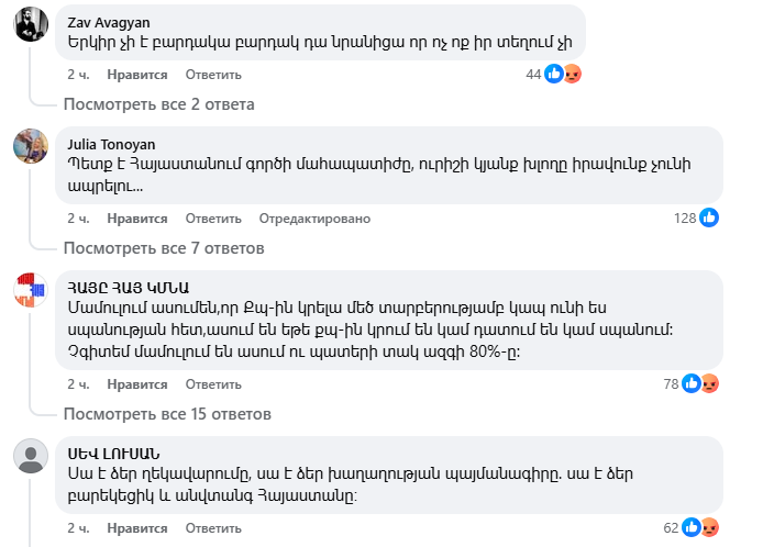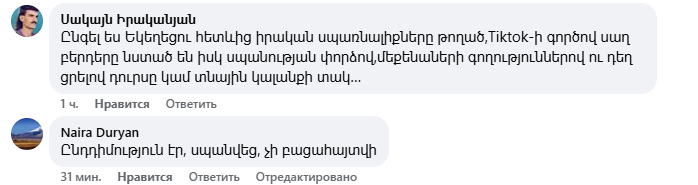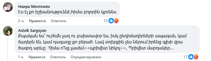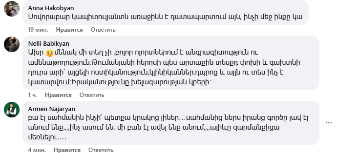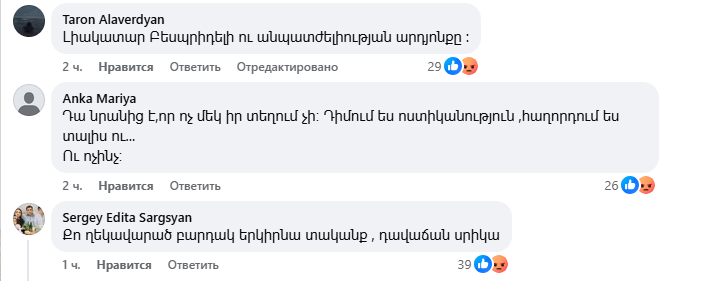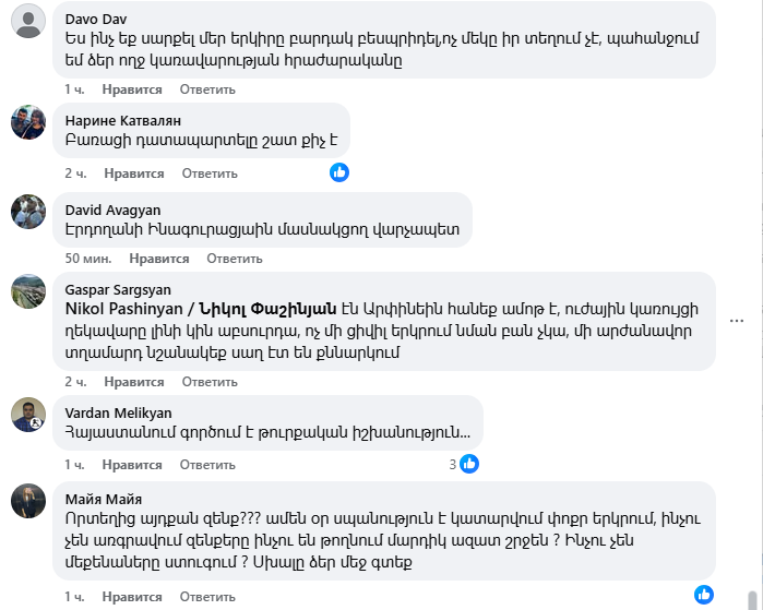Yerevan.Today-ը առանձնացրել է բազմաթիվ բացասական մեկնաբանություններից մի քանիսը։