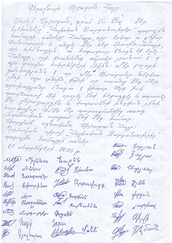 «Հայկական Զարդանախշեր» պարային համույթի 65 սանի նամակը