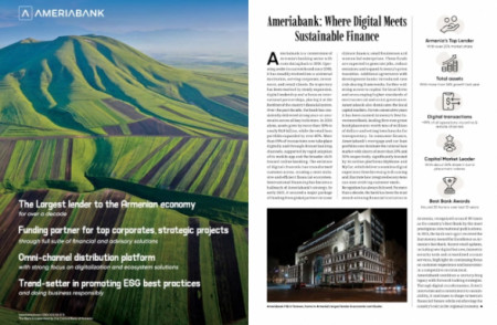 Forbes ամսագիրը հրապարակել է Հայաստանին նվիրված հատուկ զեկույց, որտեղ ներկայացվում է երկրի տնտեսական ու ներդրումային գրավչությունը: Զեկույցում հեղինակային անդրադարձ է կատարվել Ամերիաբանկին և վերջին տարիներին բիզնեսի տարբեր ուղղություններով բանկի արձանագրած ցուցանիշներին ու ձեռքբերումներին: