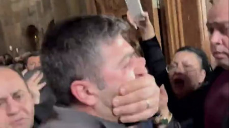Օրվա կադրը. Փաշինյանի անձնական կապրիզներն սպասարկող ոստիկանական համազգեստով ու անհամազգեստ ոստիկան-քպ-ականները Հովհաննավանլում փակում են Հայ առաքելական եկեղեցու հետևորդ, հայ-քրիստոնյայի բերանը: Չնայած այդ բռնություններին, հայ մարդը մի քանի անգամ հասցնում է բացականչել, որ Ստեփան Ասատրյանն իրավունք չունի պատարագ մատուցել: