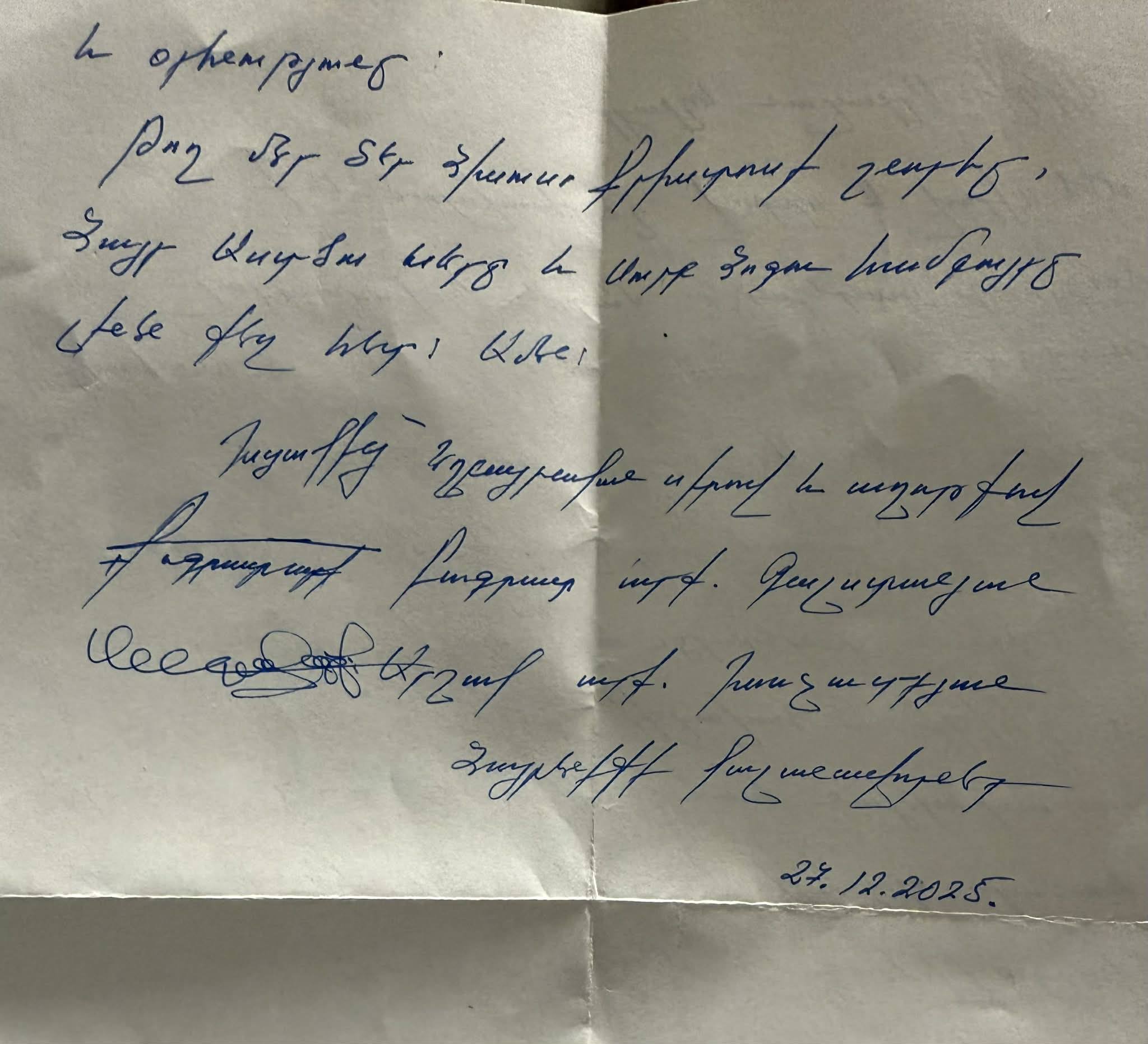 Բանտից հղած նմակում ասված է.
