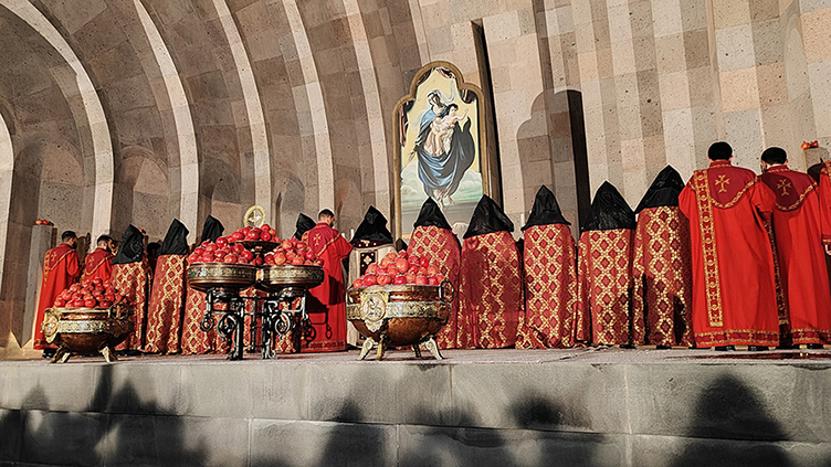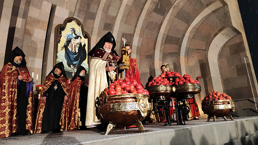 Ամանորի գիշերը Ն.Ս.Օ.Տ.Տ. Գարեգին Երկրորդ Ծայրագույն Պատրիարք և Ամենայն Հայոց Կաթողիկոսի հանդիսապետությամբ Միածնաէջ Մայր Տաճարում կատարվեց Հանրապետական մաղթանք, որից հետո Մայր Աթոռ Սուրբ Էջմիածնի Սուրբ Տրդատ բաց խորանին տեղի ունեցավ նռնօրհնեքի արարողություն։