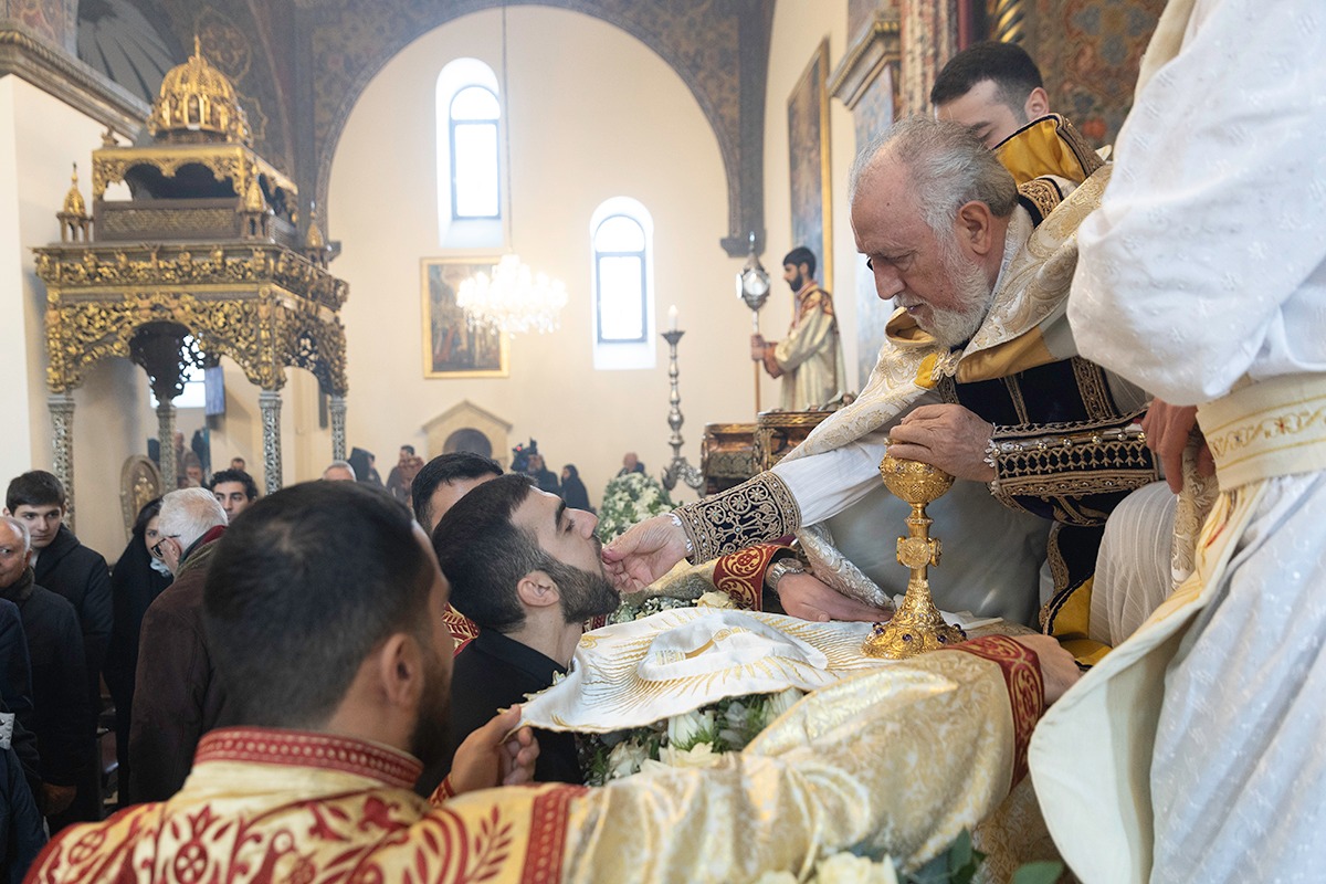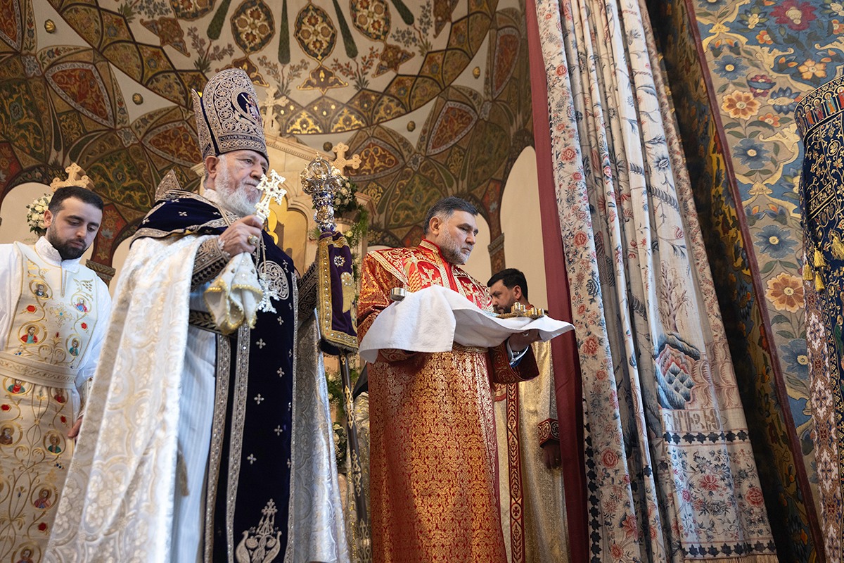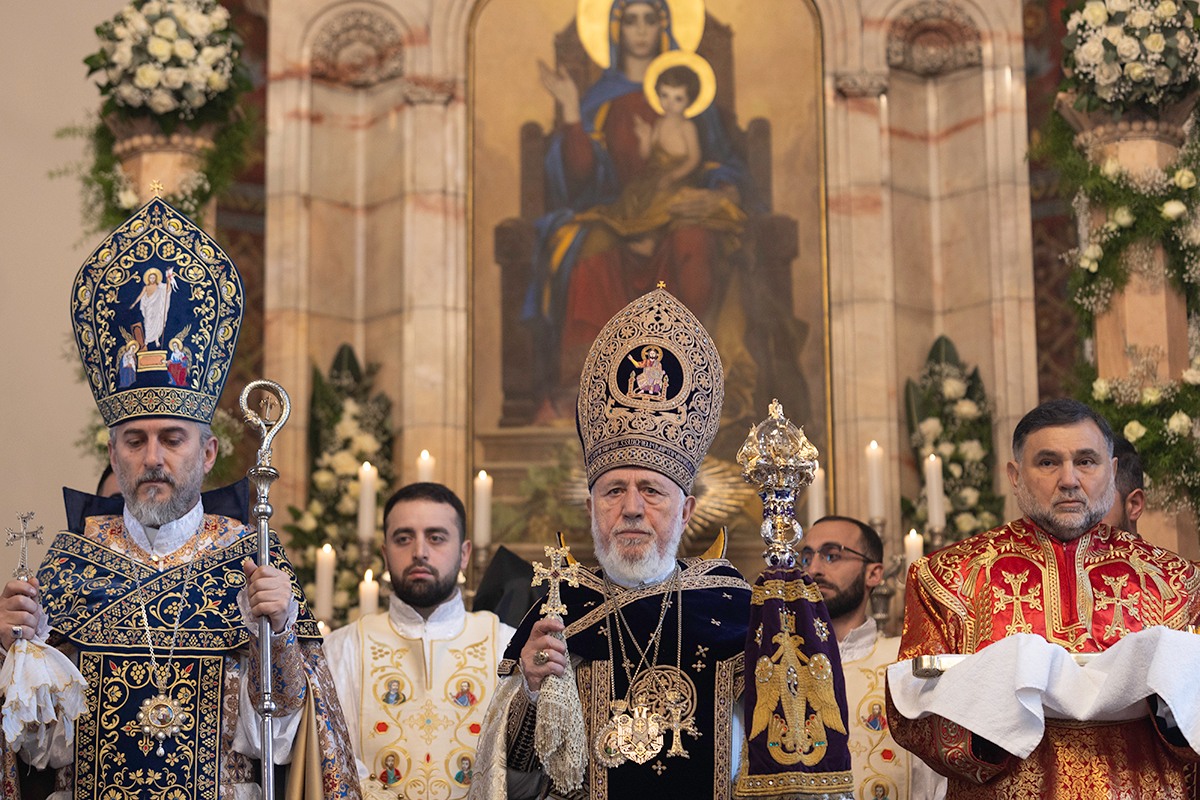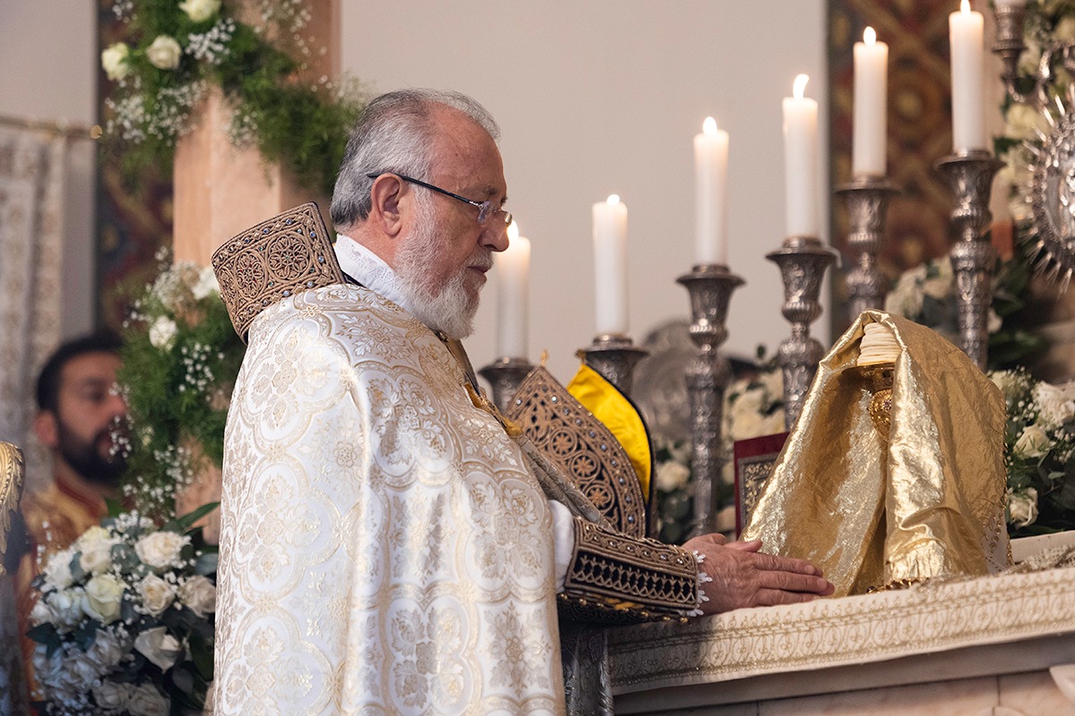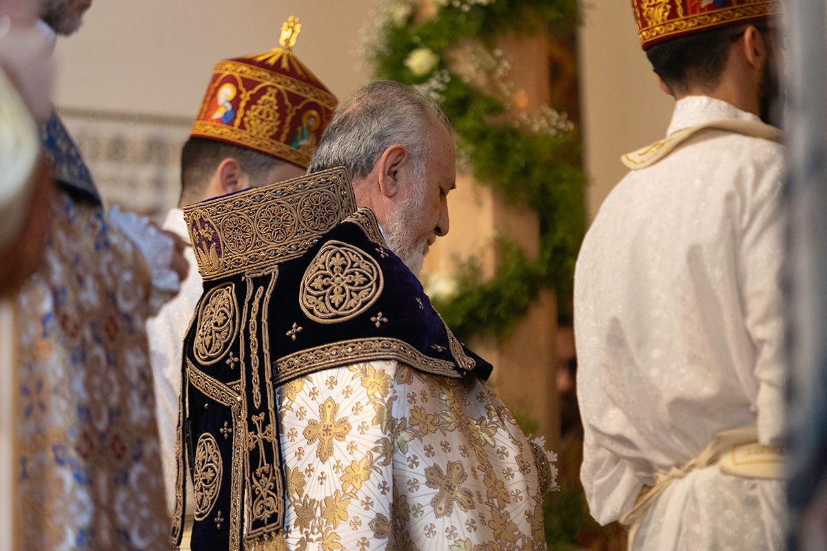 Սրբազան արարողությանը Հայոց Հովվապետին որպես առընթերականներ սպասավորում էին Գերաշնորհ Տ. Մուշեղ եպիսկոպոս Բաբայանը և Գերաշնորհ Տ․ Դանիել եպիսկոպոս Ֆընտըգյանը։