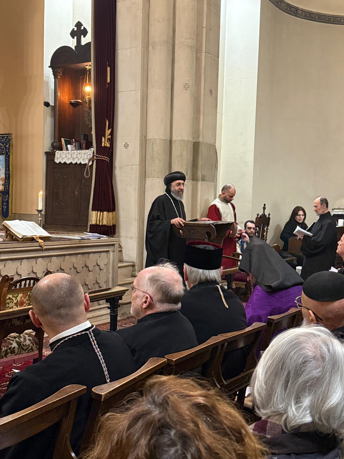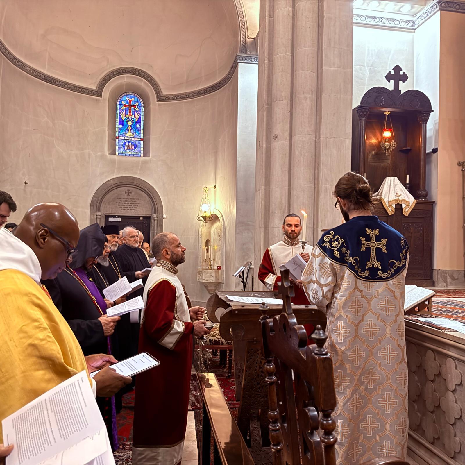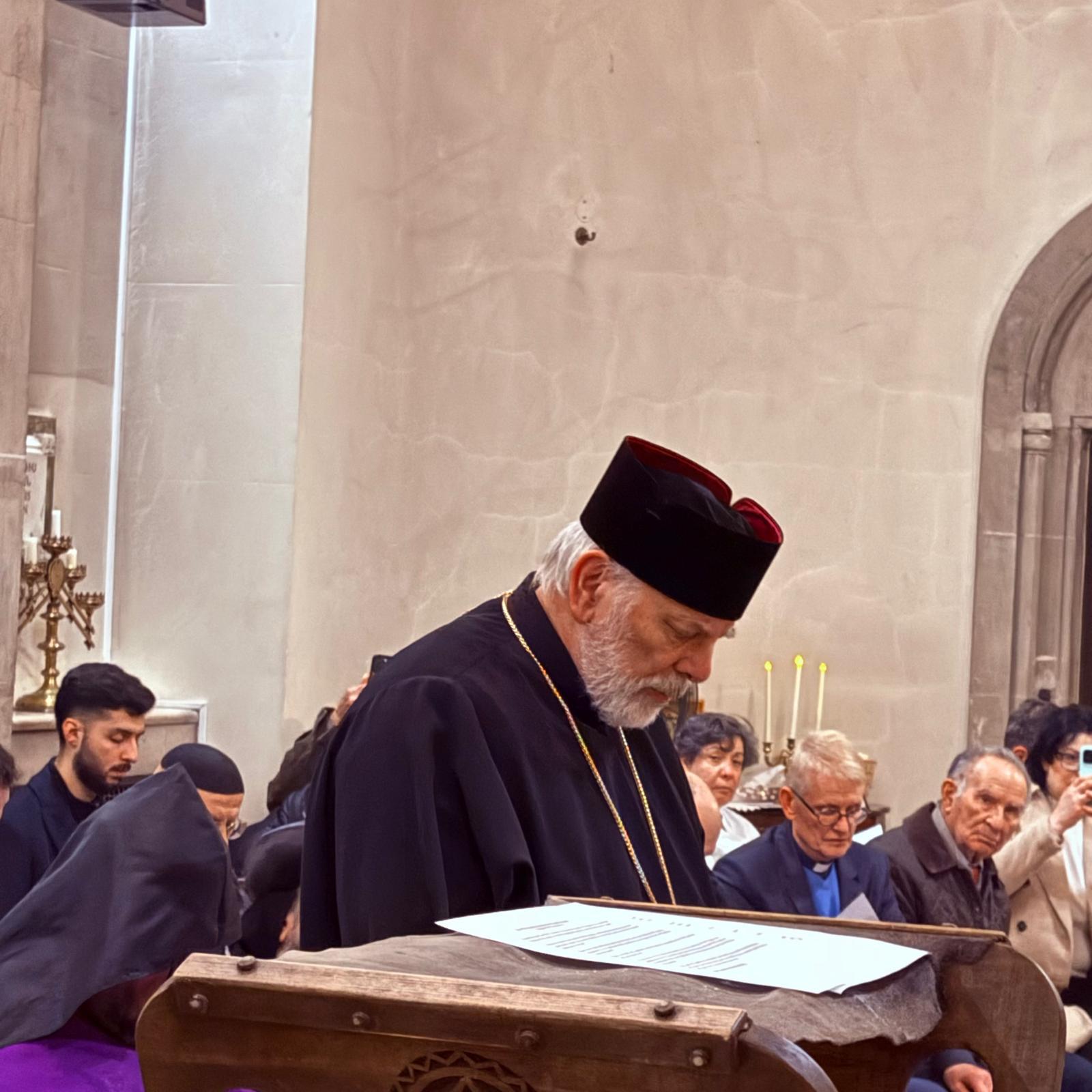 Արարողության սկզբում ներկաներին ողջունեց Մեծ Բրիտանիայի և Իռլանդիայի հայոց թեմի առաջնորդ Տ. Հովակիմ եպիսկոպոս Մանուկյանը։ Սրբազան Հայրը շնորհակալություն հայտնեց տարբեր եկեղեցիների ներկայացուցիչներին իրենց ներկայության և համերաշխության համար՝ առանձնապես ընդգծելով հայ ժողովրդի և Հայ Եկեղեցու կողքին կանգնելու կարևորությունը եկեղեցական կյանքի այս դժվարին ժամանակաշրջանում։