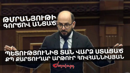 Սա նշանակում է, որ 2021 թվականի գրեթե ամբողջ ընթացքում, երբ Արթուր Հովհաննիսյանը Ազգային ժողովից՝ ՀՀ հպարտ հարկատուների հաշվին, ստացել է պետական բյուջեից վարձավճարի փոխհատուցում,
