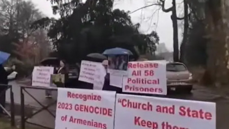 Ստրասբուրգում ՀՀ արտաքին գործերի նախարար Արարատ Միրզոյանի ելույթի ժամանակ, Եվրոպայի պալատի դիմաց տեղի է ունեցել բողոքի ցույց Հայ Առաքելական եկեղեցու հալածանքների եւ մարդու իրավունքների համակարգային խախտումների դեմ: Չնայած անձրեւին՝ Գերմանիայից եւ Ֆրանսիայից մոտ 30 հայ էր դուրս եկել՝ եվրոպական կառույցներին հիշեցնելու, որ երկրում իրական իրավիճակը կտրուկ տարբերվում է Երեւանի պաշտոնական հռետորաբանությունից: