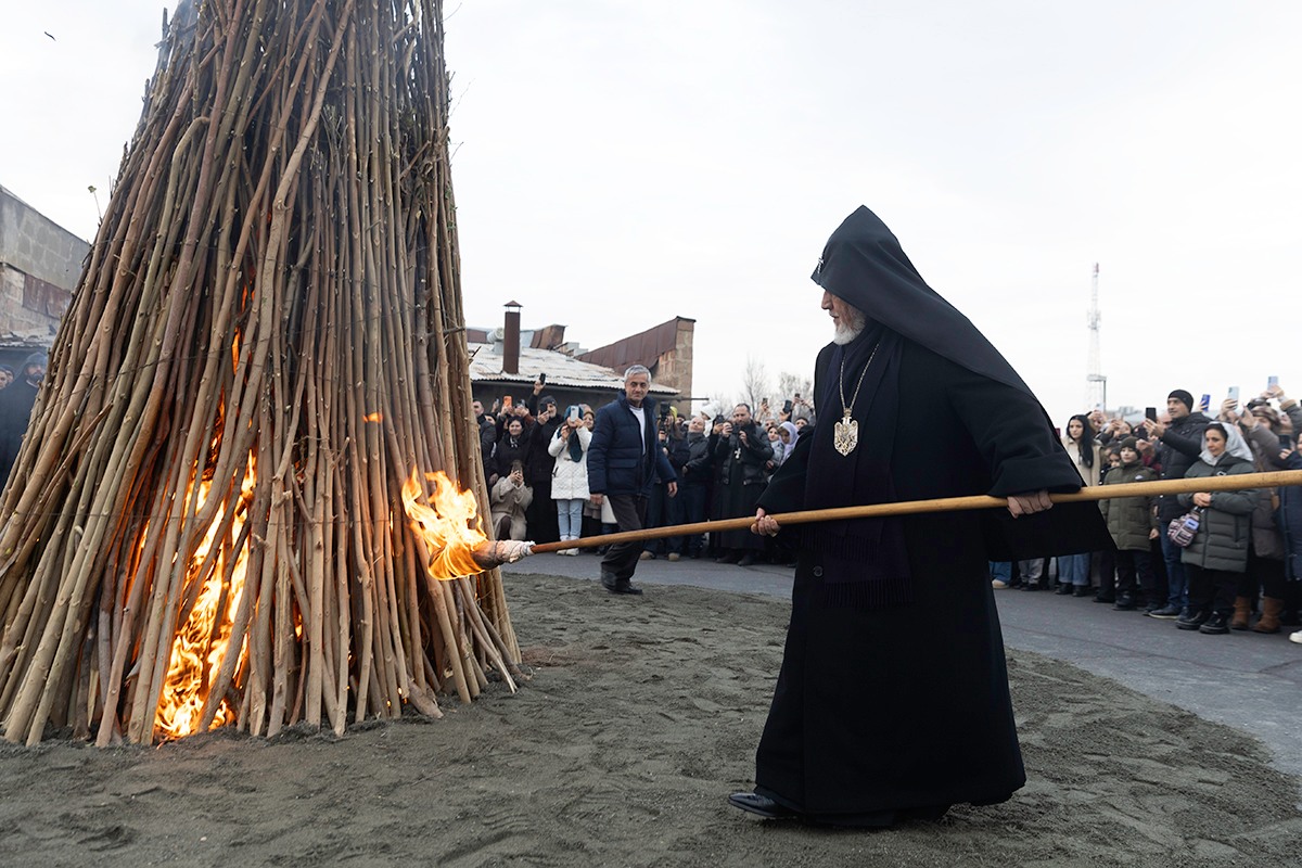 Արարողության ավարտին եկեղեցականաց թափորն ուղղվեց դեպի Մայր Աթոռի միաբանական շենքի շրջափակ, ուր ներկայությամբ բազում հավատավոր հայորդիների, Ամենայն Հայոց Հովվապետի ձեռամբ վառվեց Տեառնընդառաջի խարույկը: Վեհափառ Հայրապետը նաև հավատավոր հայորդիներին ընծայեց խաչեր: