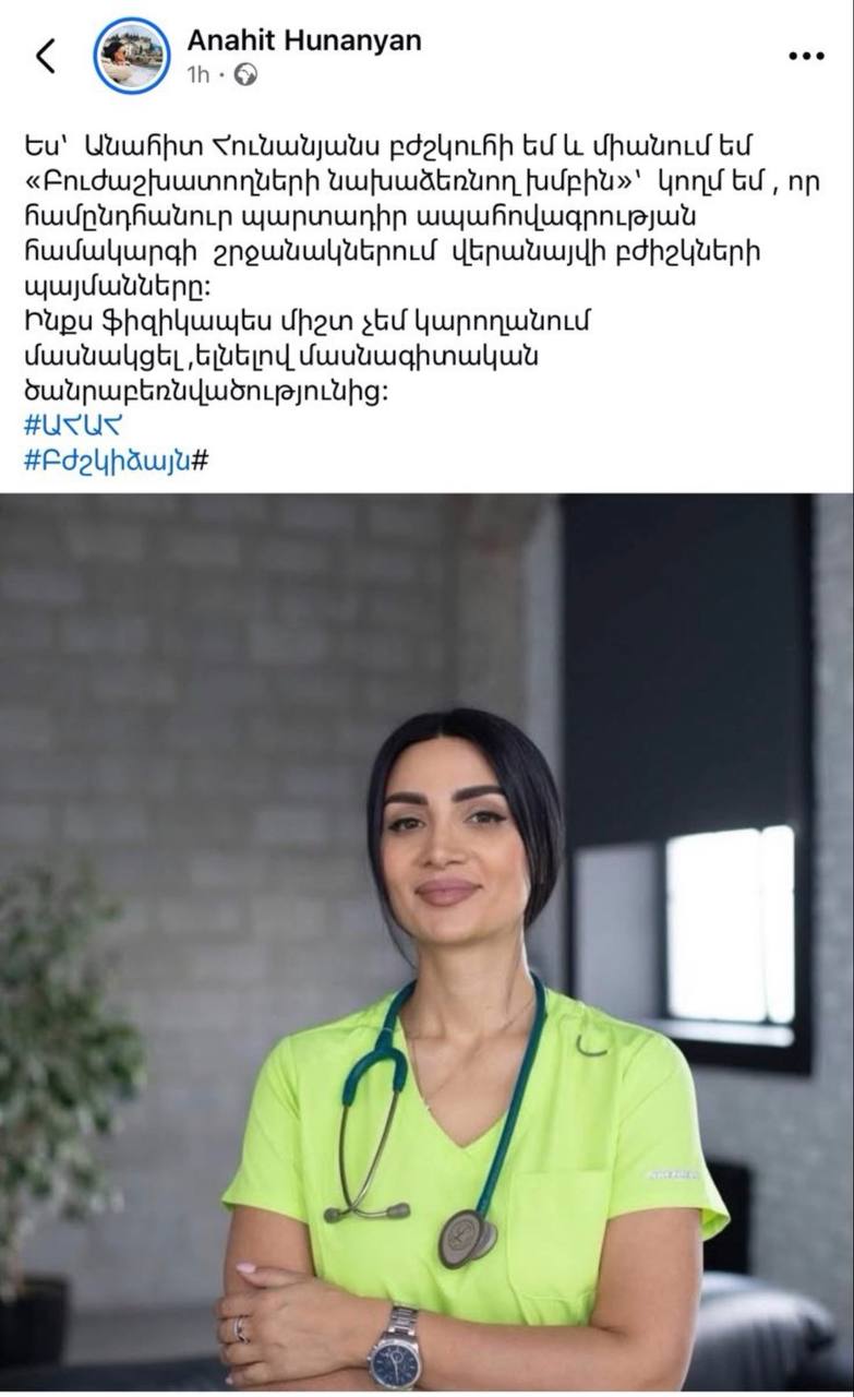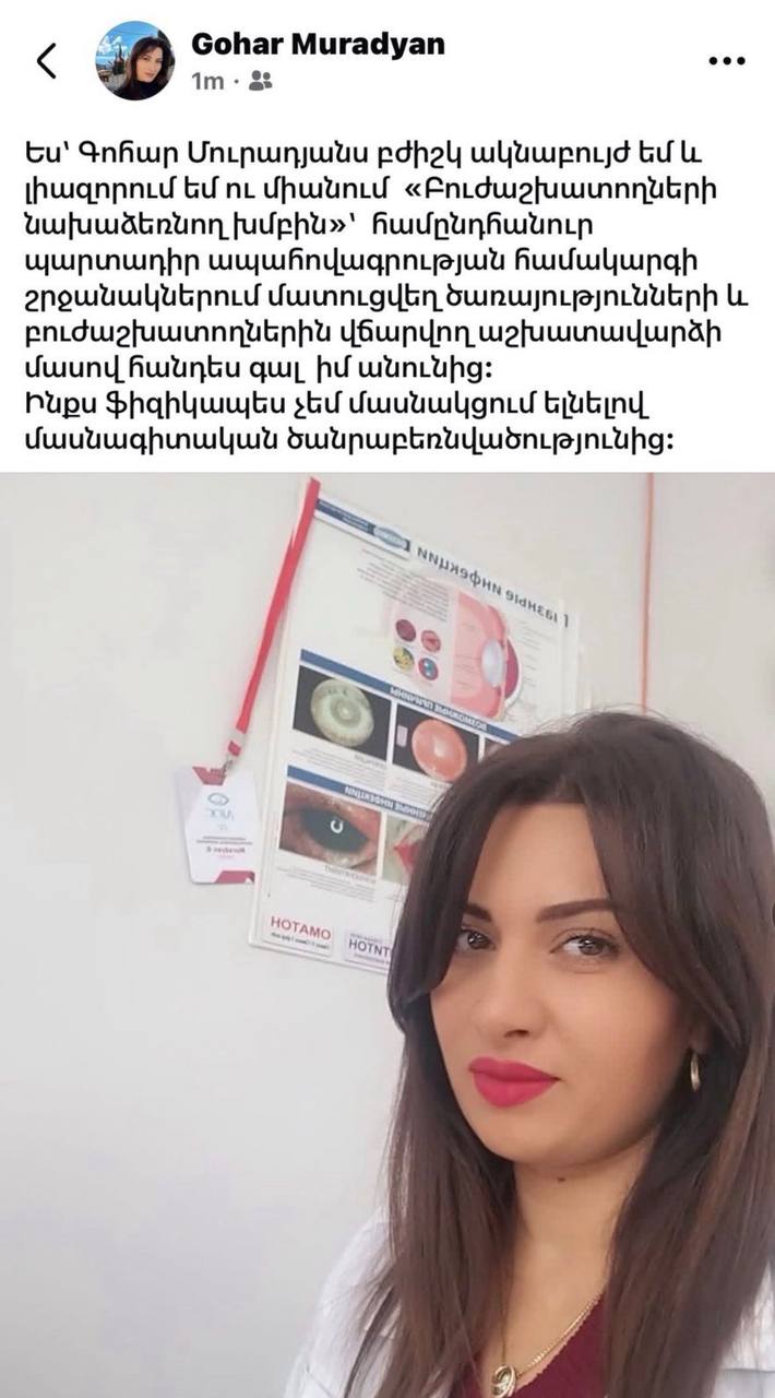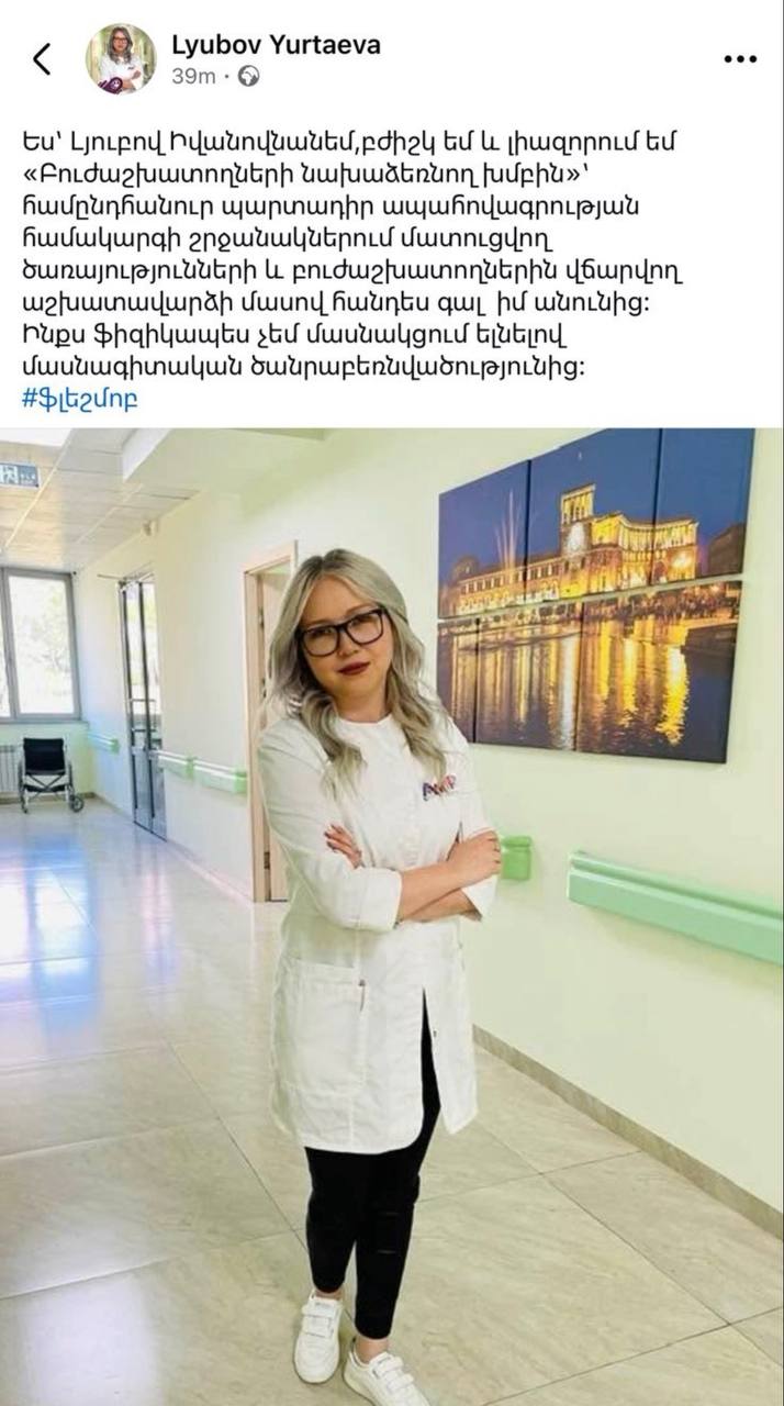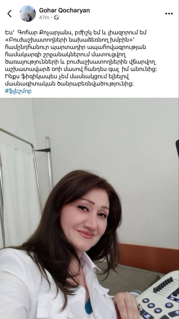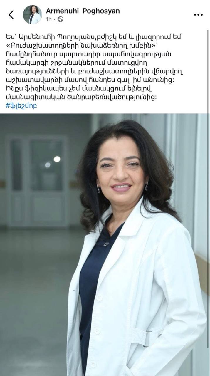 Բուժաշխատողները սոցիալական հարթակներում ֆլեշմոբ են սկսել՝ արձագանքելով առողջապահության նախարարության մամուլի խոսնակ Մարիամ Ծատրյանի գրառմանը, որը որոշ ժամանակ անց հեռացվել էր, սակայն հասցրել էր լայն արձագանք ստանալ մասնագիտական համայնքում։