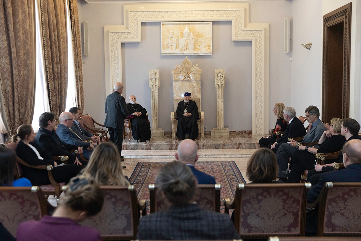 Վեհափառ Հայրապետը ողջունելով հյուրերի այցը Հայաստան և Մայր Աթոռ Սուրբ Էջմիածին՝ անդրադարձավ Հայոց Եկեղեցու՝ հայ ժողովրդի կյանքում կարևոր դերակատարությանը, արձանագրեց, որ պատմության ամենադժվար պահերին Եկեղեցին իր հոգեխնամ և ազգապահպան առաքելությամբ առաջնորդել է ազգին հավատով և հույսով դիմագրավելու բոլոր մարտահրավերներին։ Նորին Սրբությունն իր խոսքում անդրադարձ կատարեց նաև Հայաստանում և տարածաշրջանում առկա մարտահրավերներին ու զարգացումներին։