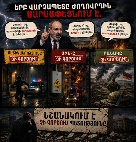 Եթե մի երկրի վարչապետ սպառնա՝ ժողովու՛րդ, սեպտեմբերին հրդեհ է լինելու, ով բնակարանում գազի կաթսա տեղադրի՝ կվառվի, ապա տարրական տրամաբանությունը կհուշի, որ էդ երկրում ԱԻՆ-Ը ՉԻ ԳՈՐԾՈՒՄ։