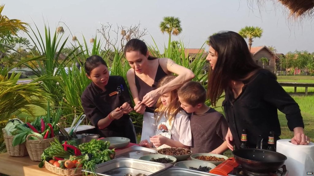 Ինչպես նշվում է, առաջին անգամ Ջոլին միջատներ է ճաշակել Կամբոջա առաջին այցի ժամանակ: