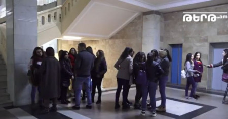 ԵՊՀ ուսանողները նստացույց են անում ռեկտորի պաշտոնակատարի աշխատասենյակի դիմաց. Տեսանյութ