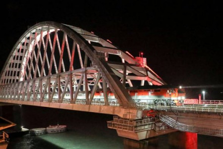 «ՌԻԱ Նովոստի Ղրիմ» գործակալությունը հրապարակել Է Ղրիմի կամրջով առաջին մարդատար գնացքի անցման տեսագրությունը: Կադրերում երեւում Է, թե ինչպես Է գնացքը անցնում կամարների տակով, որոնք լուսավորված են Ռուսաստանի դրոշի գույներով: Սանկտ Պետերբուրգից մեկնած «Տավրիա» գնացքը պետք Է 2741 կիլոմետր հաղթահարի 43,5 ժամում: