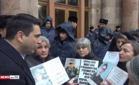 Կառավարության դիմաց այսօր՝ փետրվարի 20-ին, բողոքի ակցիա էին իրականացնում բանակում խաղաղ պայմաններում տարբեր տարիներին մահացած զինծառայողների մայրերը։ Նրանց հետ հանդիպեց Ազգային ժողովի փոխնախագահ Ալեն Սիմոնյանը։ Հաղորդում է NEWS.am-ը: