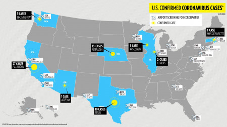 ԱՄՆ-ում մարտի 1-ի դրությամբ գրանցվել է ավելի քան 70 կորոնավիրուսի դեպք: Վարակված մարդկանց մեծ մասը վերջերս ճամփորդել էին Չինաստան, կամ նավարկել են «Diamond Princess» նավով: