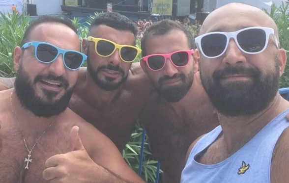 Լուսանկարներից մեկում երևում է, թե ինչպես է լողավազանը խիտ լցված միայն տղամարդկանցով, որոնց քանակը հասնում է հազարի: Դիջեյը նկարներում նշում է նաև այն գեյ-շքերթները, որոնց մասնակցում են: