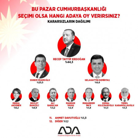 Ըստ այդ հարցումների արդյունքների՝ առաջին տեղում Թուրքիայի ներկայիս նախագահ Ռեջեփ Թայիփ Էրդողանն է (44.3%)։