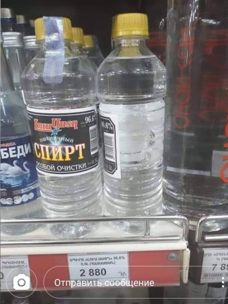 Երևան Սիթի սուպերմարկետներում Սամվել Ալեքսանյանի կես լիտրանոց «Լուս աստղ» սպիրտը 2880 դրամով է վաճառվում