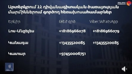Արտերկրում ՀՀ դիվանագիտական ներկայացուցչություններում գործող թեժ գծեր. Տեսանյութ 17 Մարտ, 2020 11:06 Поделиться