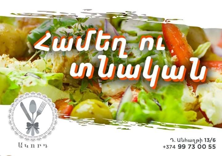 Ճաշարանը մի ամբողջ օր ապահովում է իր հաճախորդներին ամենաորակյալ և բարձրակարգ սնունդով։ Մարդիկ կարող են համտեսել ապուրներ, մսային զանազան կերակուրներ և, որ ամենակարևորն է, կարող են խմել տնական կոմպոտներ, որոնք պատրաստվում են թարմ մրգերից: «Ես այգի ունեմ և շատ մրգեր եմ աճացնում , ու հետո դրանք օգտագործում ենք կոմպոտներ պատրաստելու համար,- ասում է տնօրենը։ Կծու սիրողները ևս կգտնեն իրենց քիմքին համապատասխան ուտեստներ: Մի խոսքով տիկին Արմինեն ամեն ինչ արել է, որ իր «Ակորդում» յուրաքանչյուրը գտնի այն կերակուրը, որը հաճույքով կուտի: