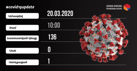 Հաստատված դեպքերի թիվը` 136 20 Մարտ, 2020 10:12 Поделиться Հաստատված դեպքերի թիվը` 136 Հայկական միասնական տեղեկատվական կենտրոն