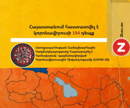 Հայաստանում կորոնավիրուսով վարակված քաղաքացիների ընդհանուր թիվը 194 է, որոնցից 2-ն ապաքինվել և դուրս են գրվել: