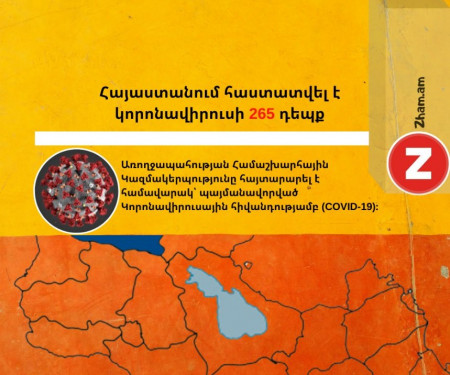 Հայաստանում գրանցվել է կորոնավիրուսով վարակման ևս 17 դեպք, վարակվածների ընդհանուր թիվը կազմում է 265: Այս մասին տեղեկացնում է ՀՀ ԱՆ հիվանդությունների վերահսկման և կանխարգելման ազգային կենտրոնը: