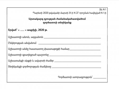 Աշխատանքի գնալիս այսուհետ անհրաժեշտ է լինելու ներկայացնել գործատուի կողմից լրացված ձևաթուղթը: