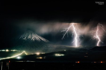 Հզոր ամպրոպը մեր բիբլիական Արարատ լեռան լանջերին։ Լուսանկարը՝ Համո Վերդյանի