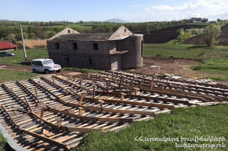 Փրկարարները տանիքի կառուցատարրերը հեռացրել են ճանապարհի երթևեկելի հատվածից: